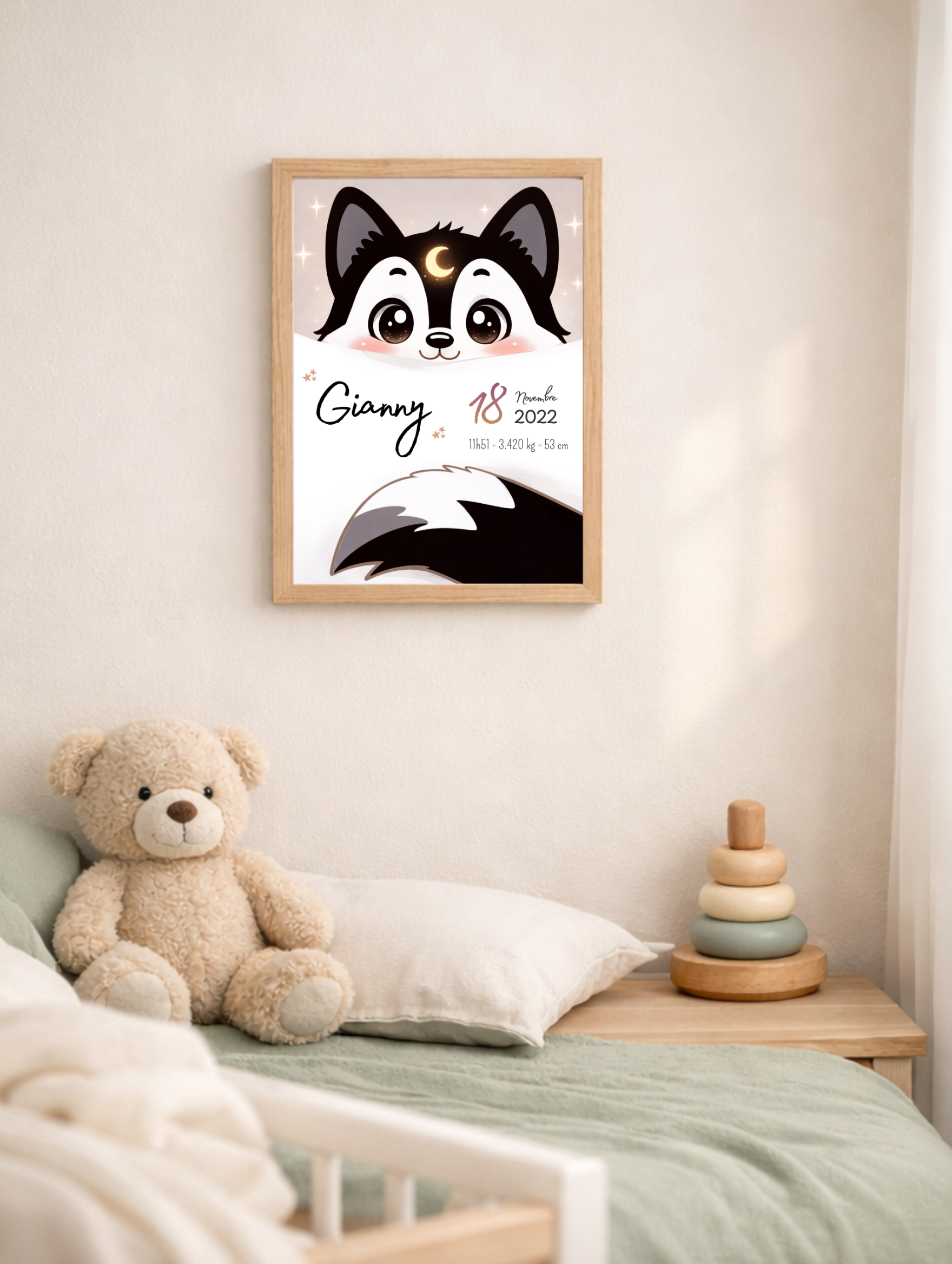 Affiche husky personnalisée | Prénom & détails de naissance | Illustration originale