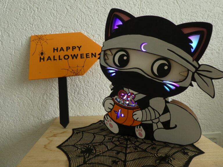 Transformez votre veilleuse Chat en une créature magique avec le Costume Ninja ! Ce costume fait main ajoute une touche féérique à vos nuits tout en laissant la lumière de la veilleuse passer grâce à ses trous astucieusement placés.