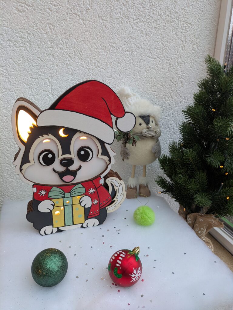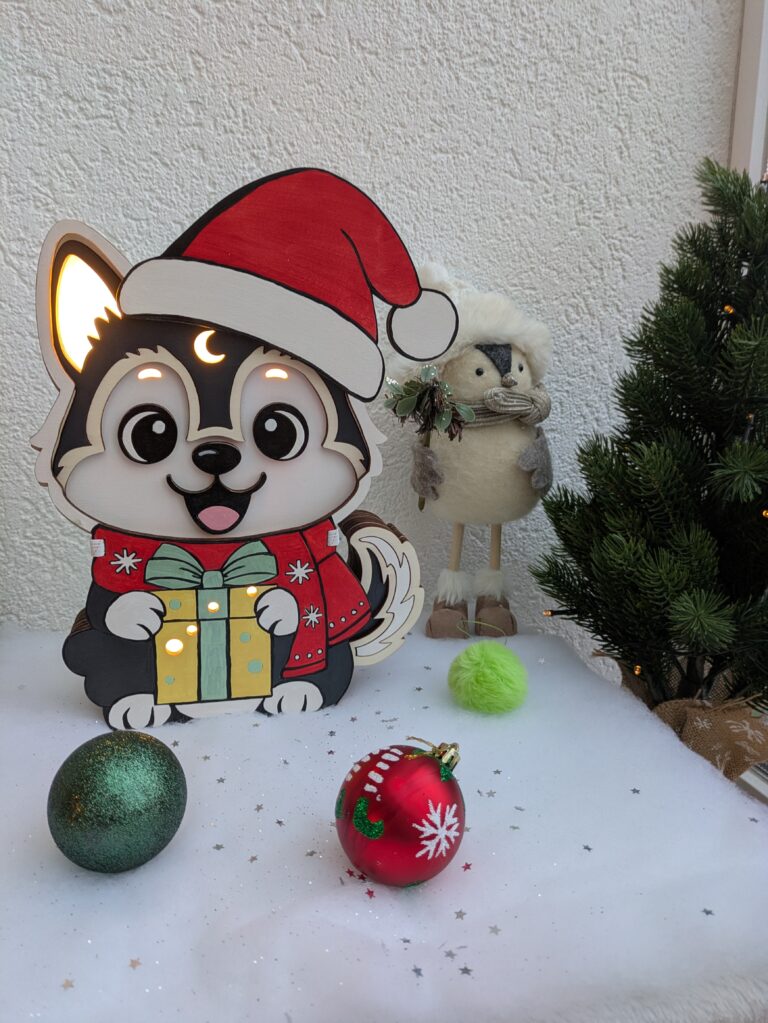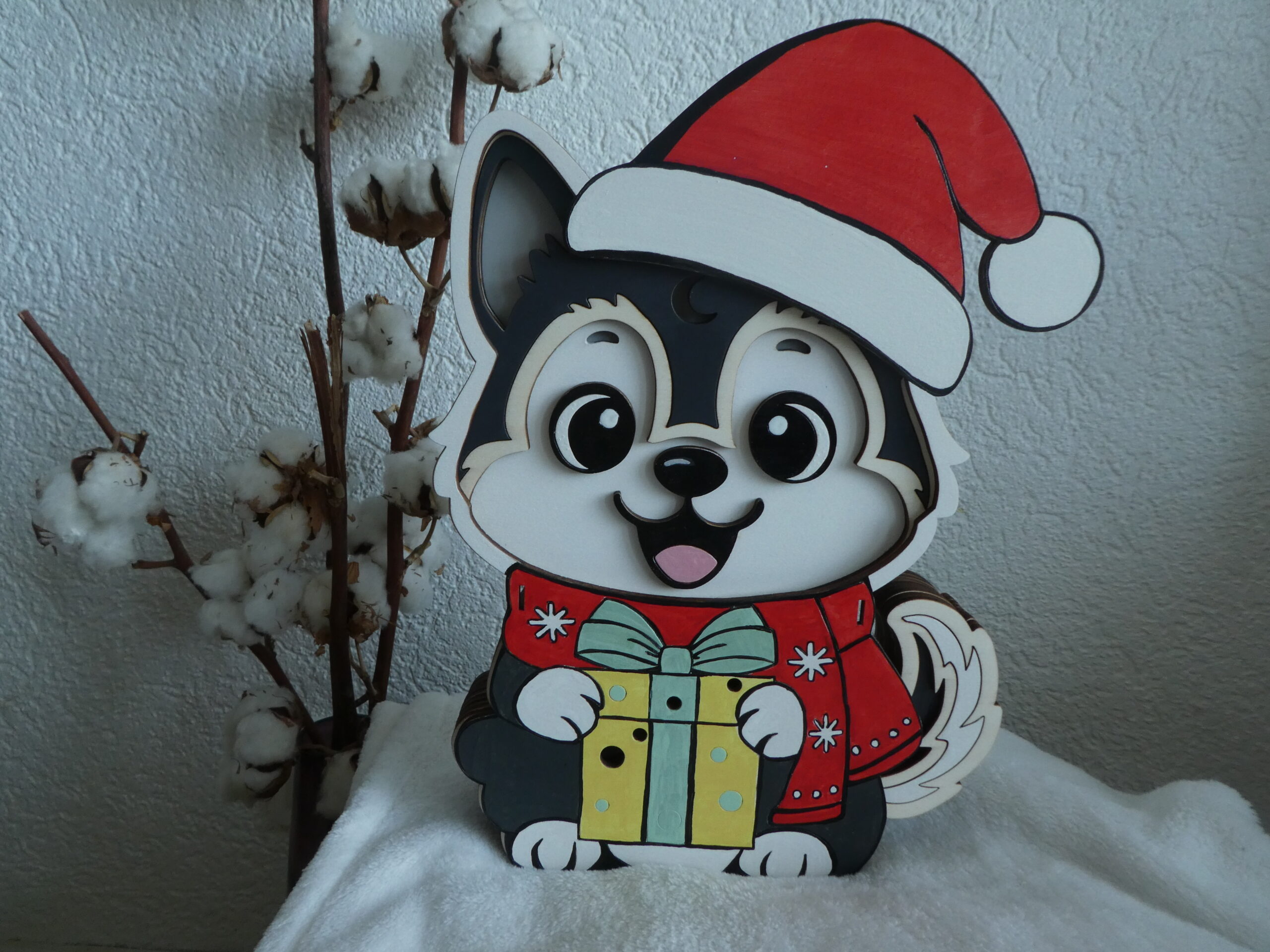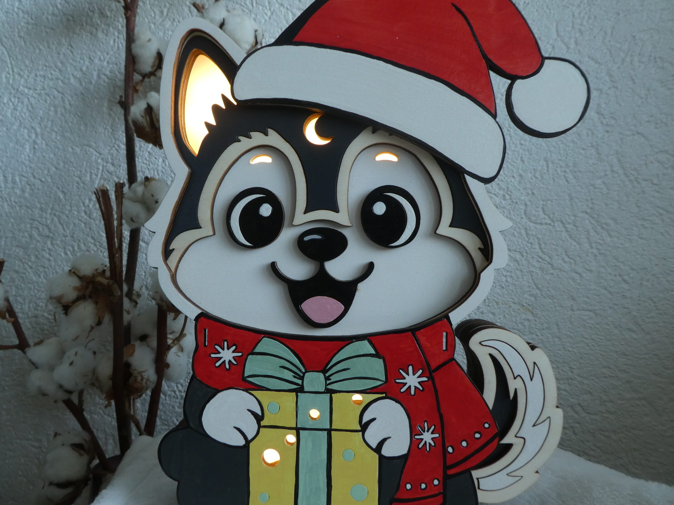 Transforme votre veilleuse Husky en petit lutin des fêtes, prêt à offrir son cadeau lumineux.