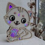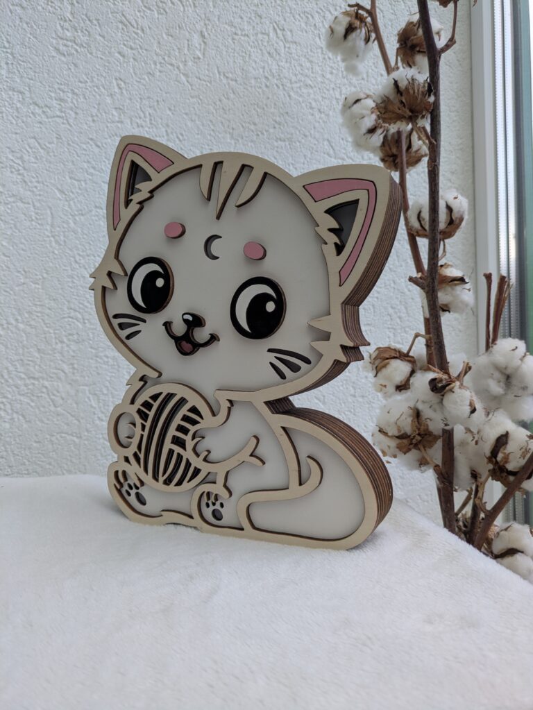 Veilleuse en bois Chat Mignon – Kawaii, personnalisable et cadeau parfait pour enfant