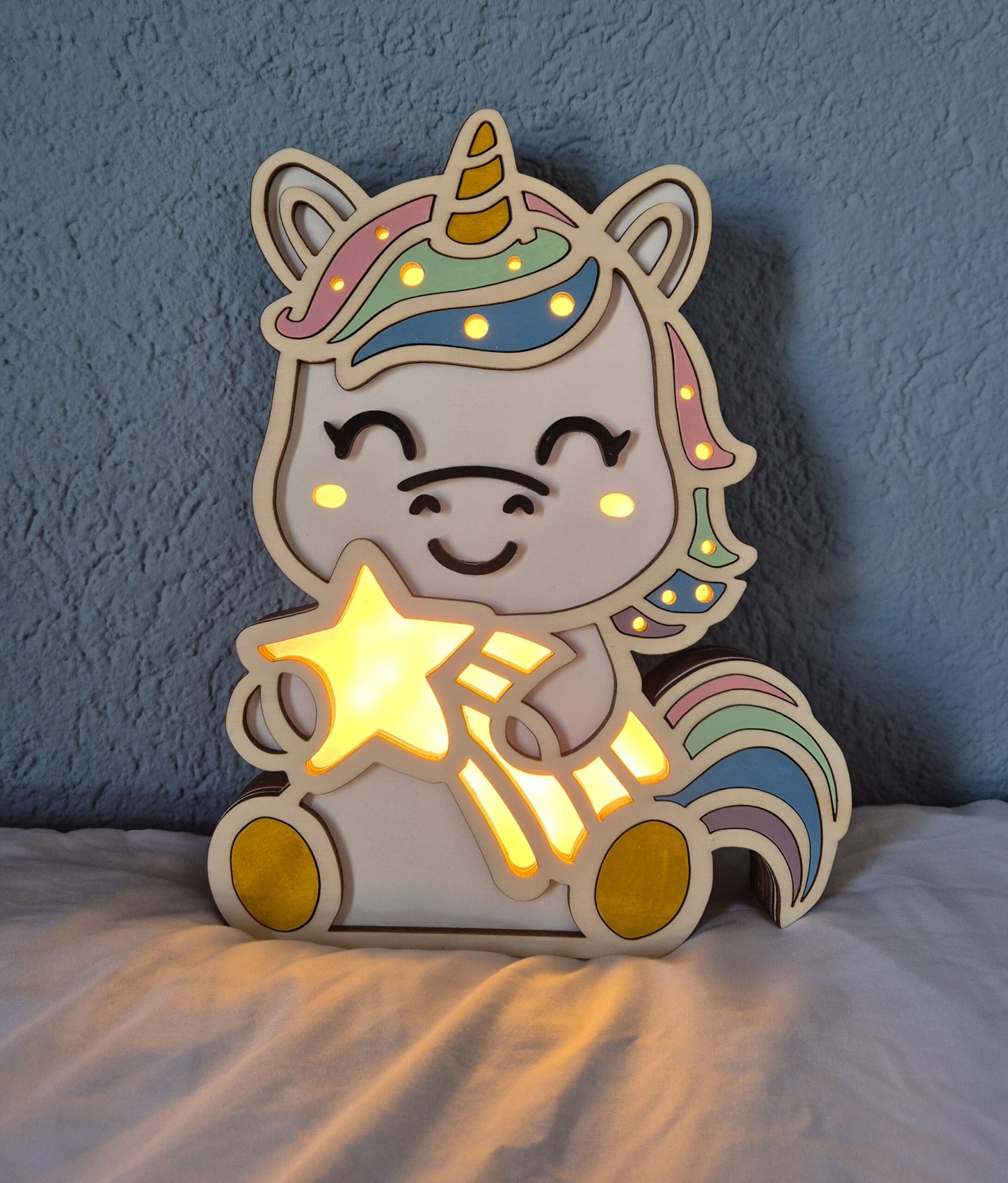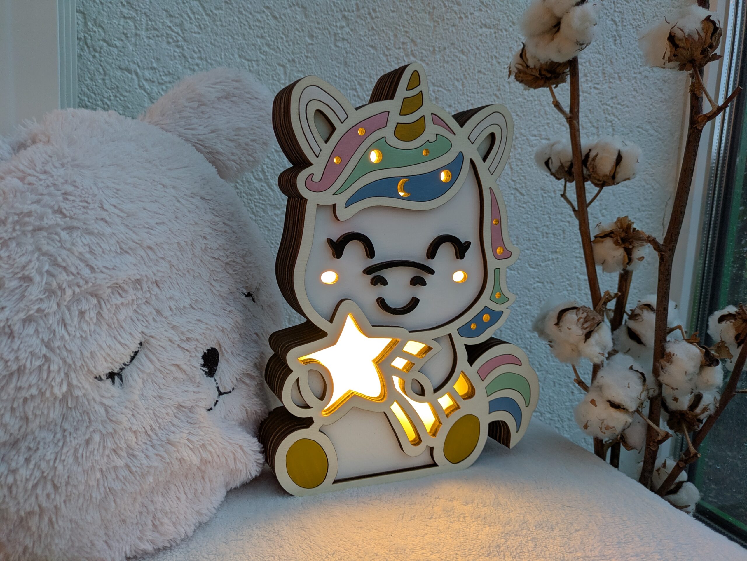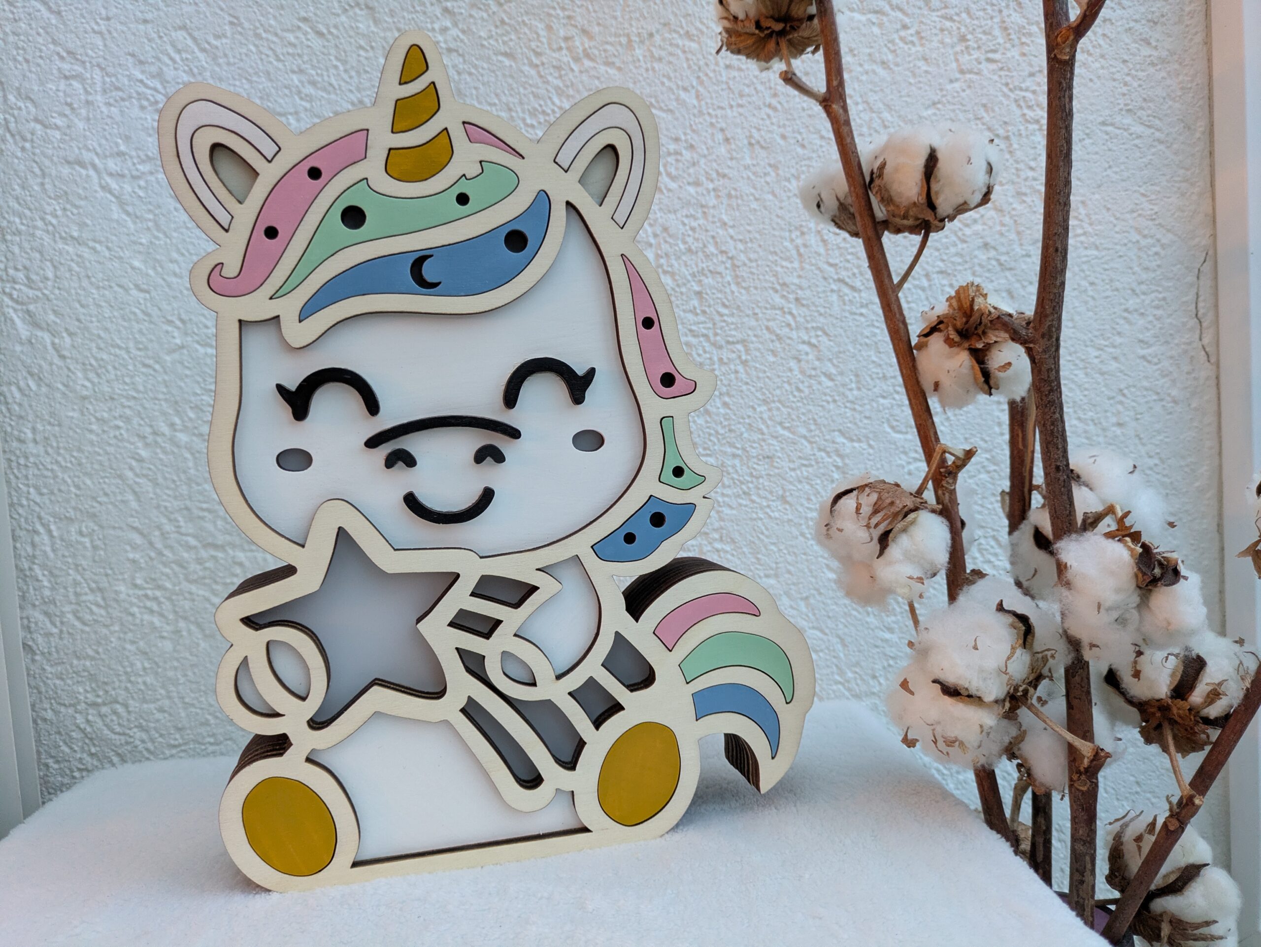 Veilleuse en bois Licorne Revêuse – Kawaii, personnalisable et cadeau parfait pour enfant