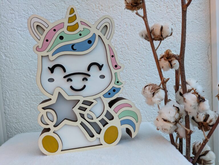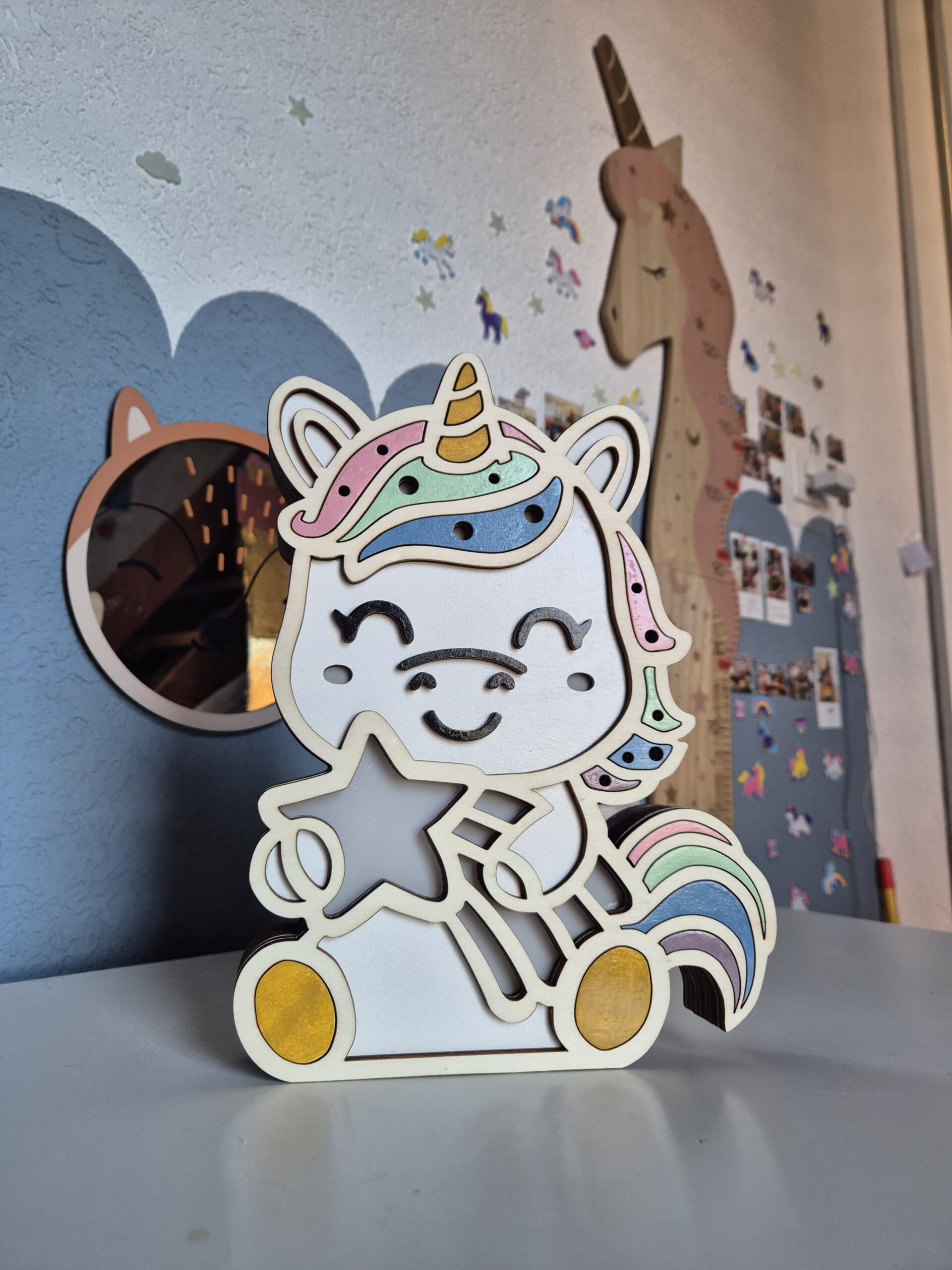 Offrez à votre enfant une veilleuse en bois Licorne, un cadeau adorable et unique ! Son design kawaii et sa fabrication artisanale en font un objet charmant, durable et parfait pour créer une ambiance douce dans la chambre.