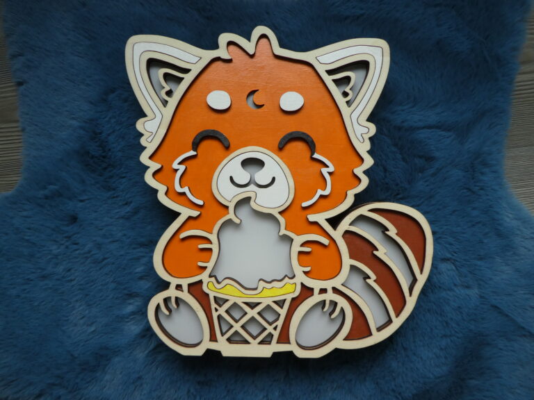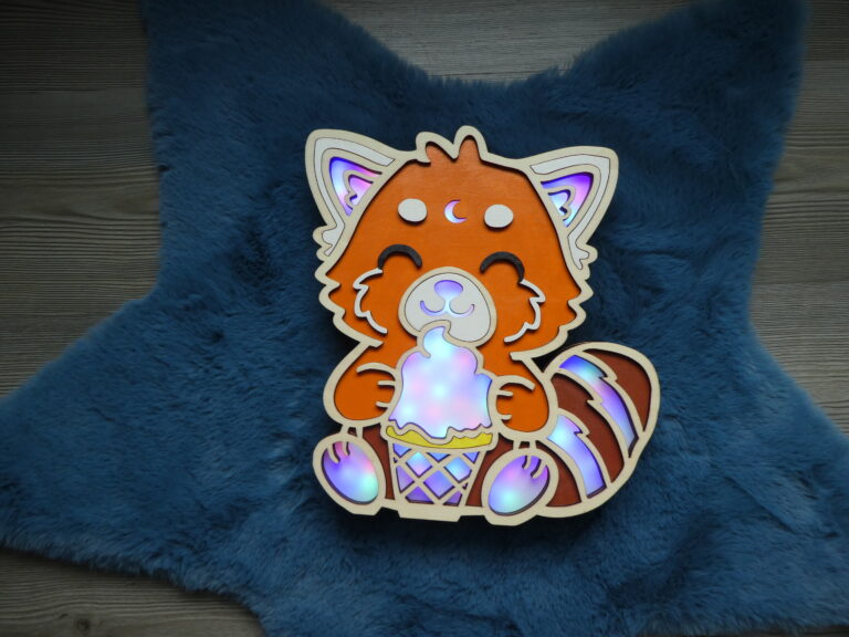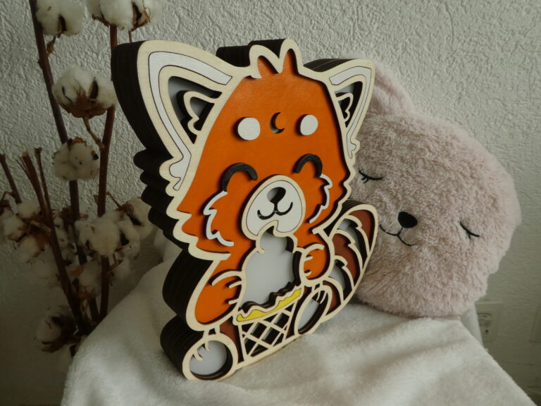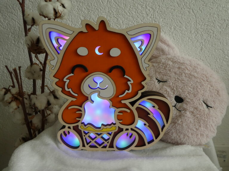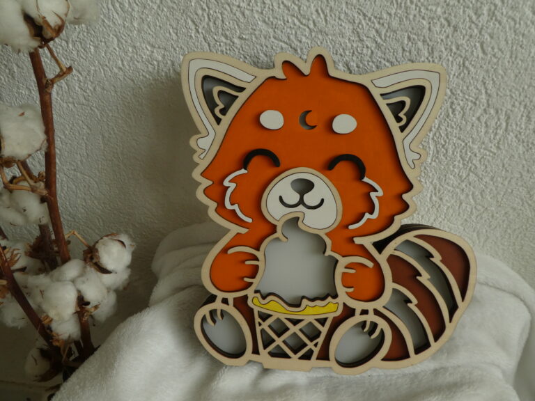 Offrez à votre enfant une veilleuse en bois unique et kawaii avec le Panda Roux Gourmand et sa glace. Adorable, personnalisable et sûre, elle crée une ambiance douce et réconfortante pour accompagner votre petit au coucher.