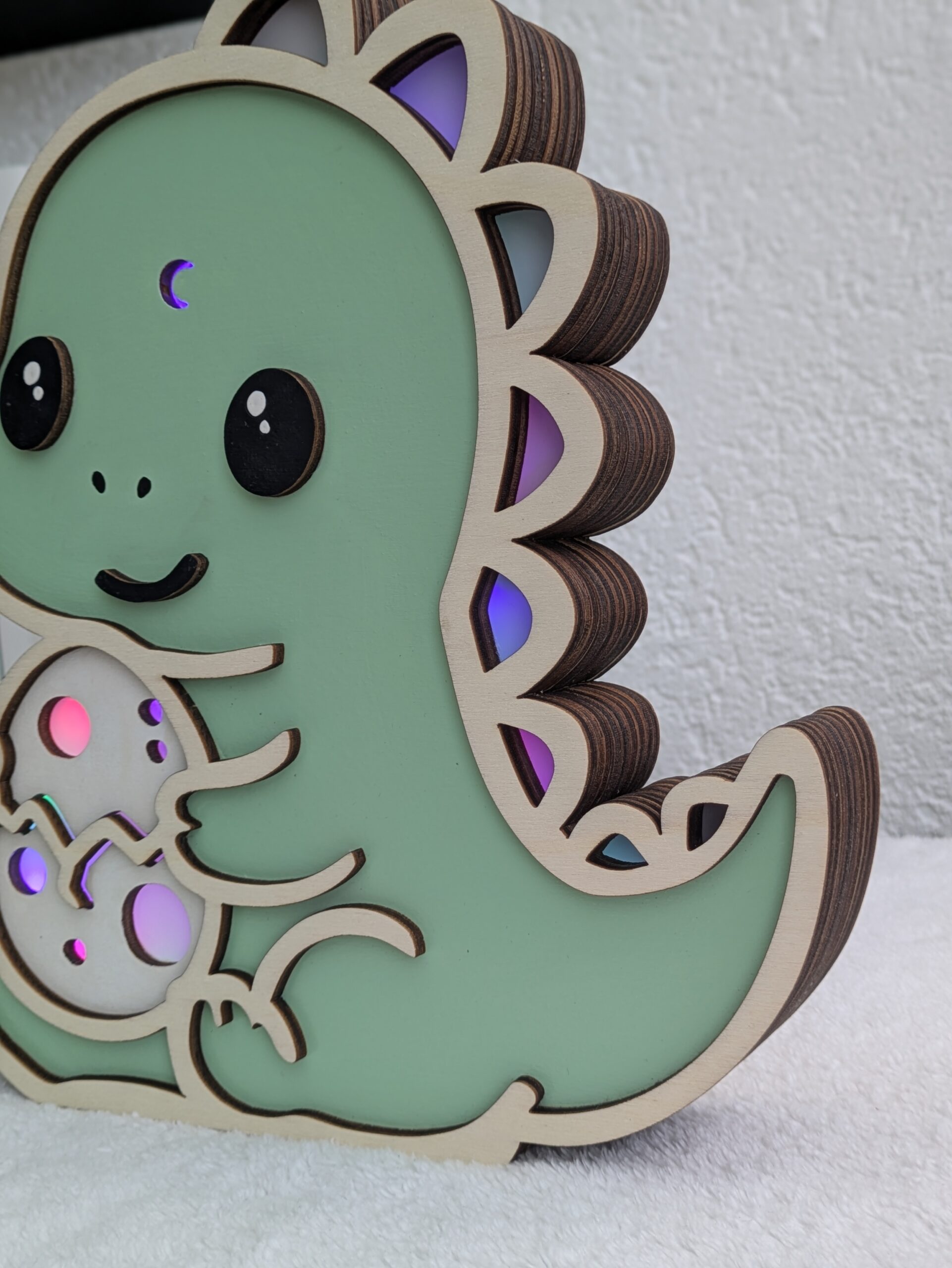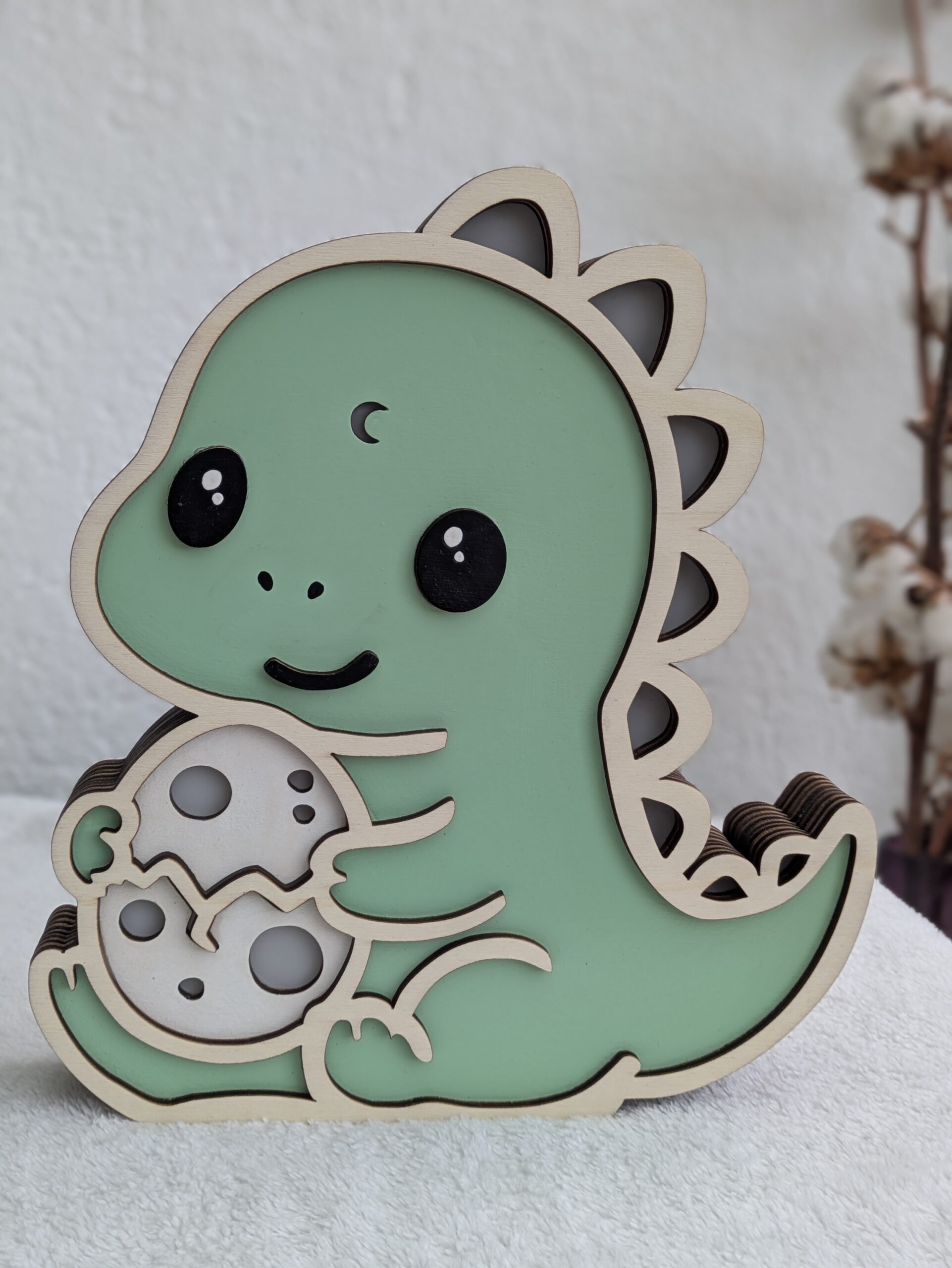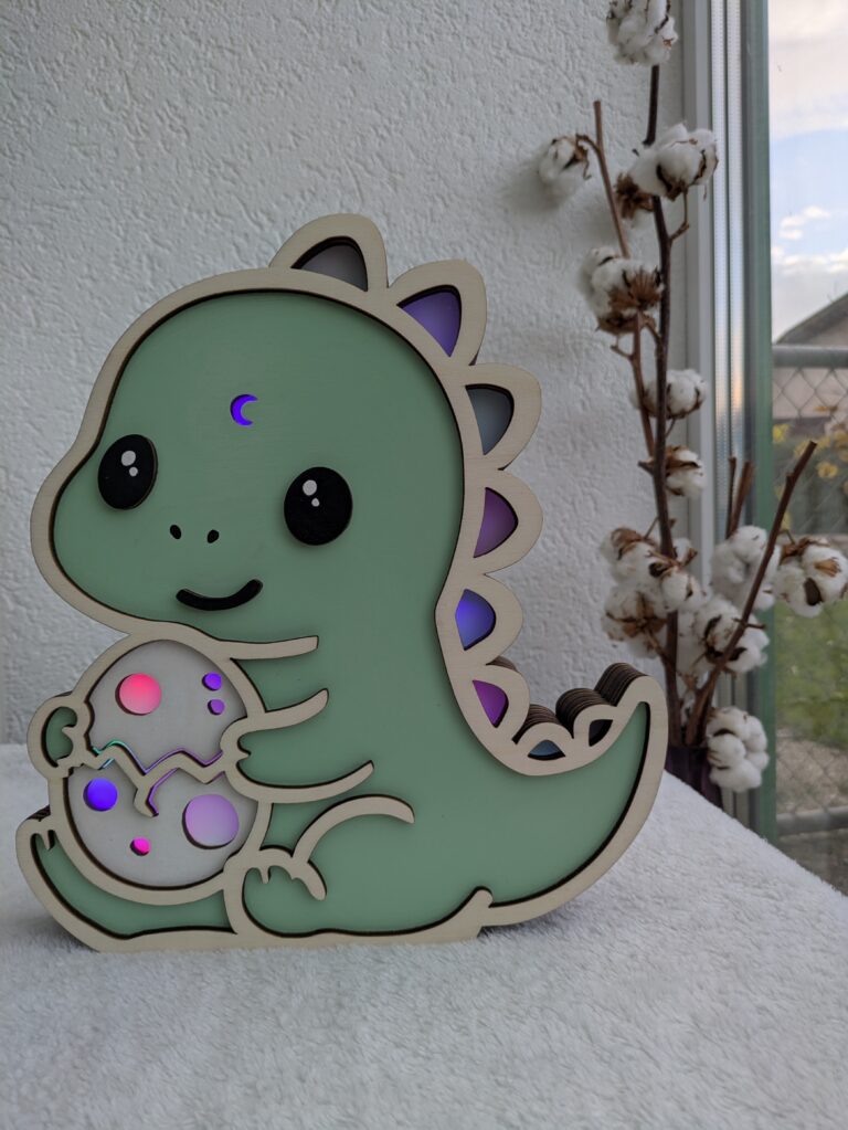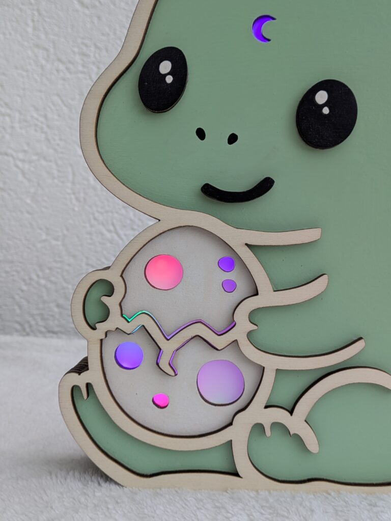 Veilleuse en bois T-rex Protecteur – Kawaii, personnalisable et cadeau parfait pour enfant